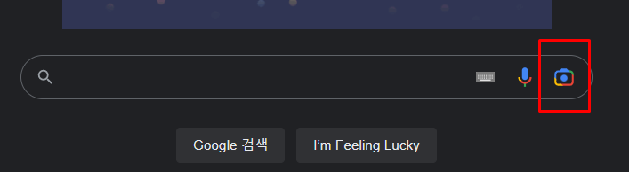 구글 검색 메인페이지에서 검색창 옆에 있는 '카메라'모양을 선택합니다. 해당 메뉴가 이미지 검색을 실행하는 버튼입니다.