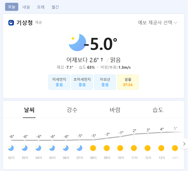 위 사진과 같이 웹 검색으로도 실시간 날씨를 확인할 수 있습니다. pc를 이용한 방법 뿐만 아니라 모바일에서도 '날씨'를 검색하는 것으로 충분히 정보를 얻을 수 있습니다.