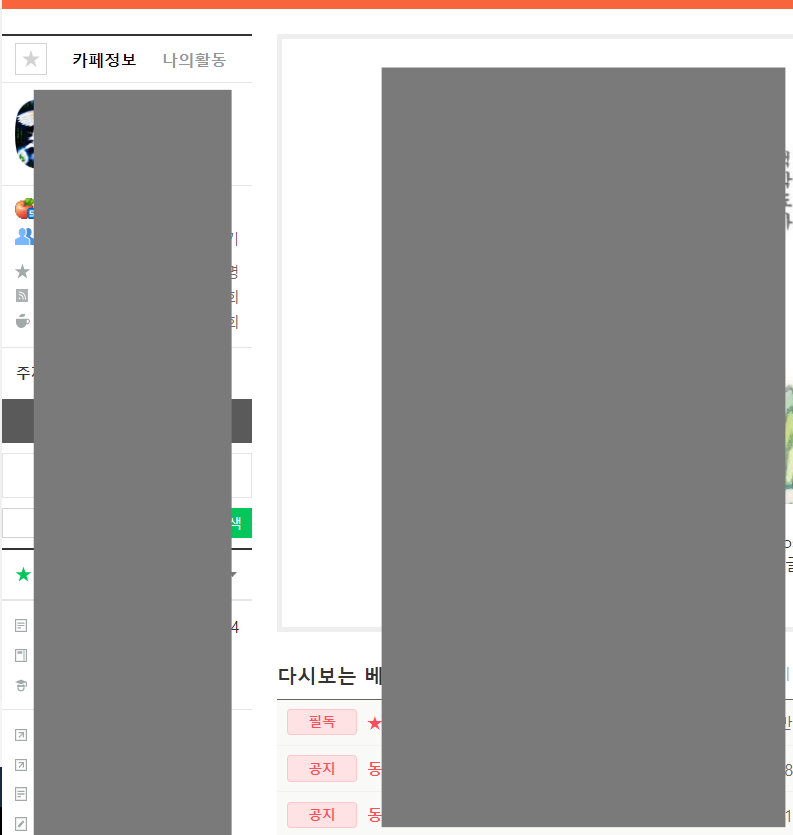*하단의 사진은 카페 메인 화면 예시입니다. 가린게 많습니다.