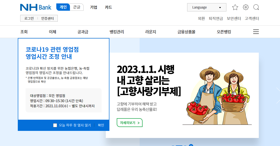 1. 농협 인터넷뱅킹 홈페이지 접속