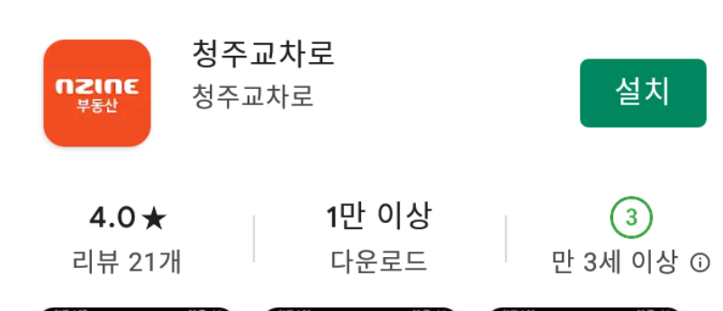 해당 어플은 별점 4점으로 긍정적인 평가를 받고 있습니다. 만 3세 이상의 경우 누구나 사용할 수 있는 어플 등급입니다. 청주 교차로 어플에 접속하면 다음 사진과 같은 화면을 볼 수 있습니다.