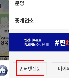 메뉴를 선택한 후, 하단에 있는 '인터넷 신문'을 선택합니다.