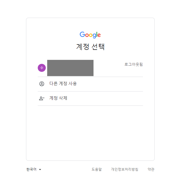 위 사진에서도 보이네요. 구글 로그인 페이지 화면으로 이동하면 등록된 계정과 함께, 다른 계정 사용, 계정 삭제 등의 다양한 메뉴가 있는 것을 볼 수 있습니다. 당연히 여기서 '계정 삭제'를 선택하시면 됩니다.
