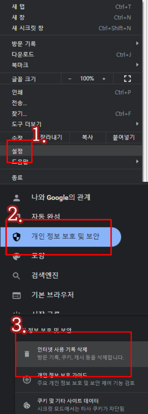 크롬 웹브라우저 쿠키 삭제하는 방법.